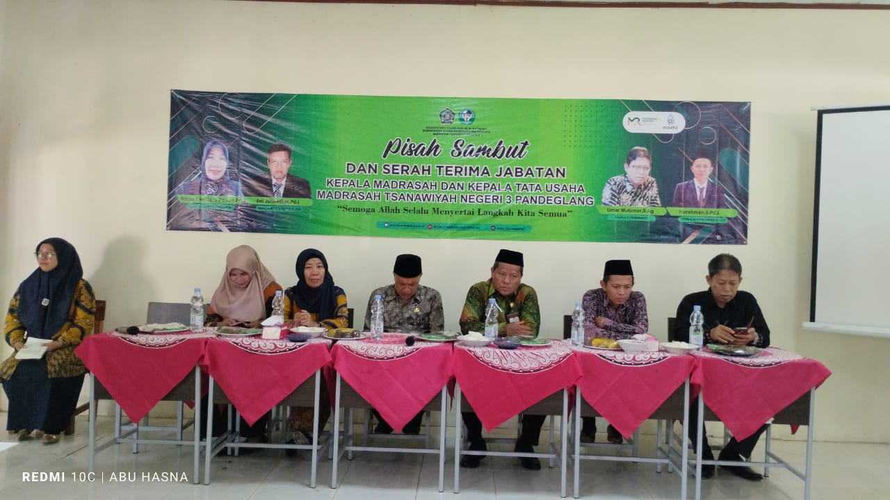 Kegiatan ini dihadiri oleh Kepala Seksi Pendidikan Madrasah, H.Isa, M.Si, Tim Urusan Kepegawaian Kemenag Kab. Pandeglang yang menjadi saksi serah terima Jabatan Kepala Madrasah dan Kepala Urusan Tata Usaha MTsN 3 Pandeglang. Selain itu, acara ini pula dihadiri oleh ketua komite MTsN 3 Pandeglang yaitu Bapak H. Arsaman Hidayat, M.M.Pd, serta seluruh dewan guru dan staff Tata usaha.
