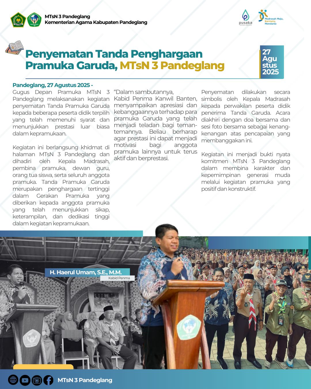 Jumat, 1 November 2024 bertempat di Bumi Perkemahan Cikujang Kec. Panimbang. Kepala Kantor Kementerian Agama Kab.Pandeglang didampingi Kepala MTsN 3 Pandeglang selaku ketua KKM menghadi