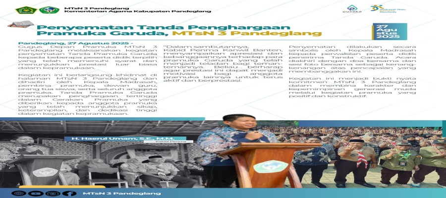 Dalam rangka memperingati Hari Ulang Tahun ke-80 Kemerdekaan Republik Indonesia yang jatuh pada tanggal 17 Agustus 2025, MTsN 3 Pandeglang menyelenggarakan serangkai